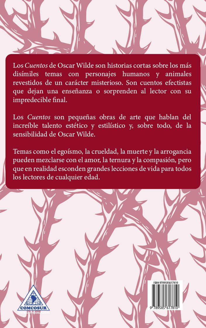 Los cuentos de Oscar Wilde son relatos breves que abarcan una asombrosa variedad de temas, con personajes humanos y animales que poseen una cualidad misteriosa. Estos cuentos, cargados de emoción y profundidad, sorprenden al lector no solo por sus impredecibles finales, sino también por las enseñanzas que transmiten. Cada uno de ellos es una pequeña obra de arte que refleja el increíble talento estético y estilístico de Wilde, así como su aguda sensibilidad. Temas como el egoísmo, la crueldad, la muerte y la arrogancia se entrelazan con el amor, la ternura y la compasión, siempre dejando grandes lecciones de vida que resuenan en lectores de todas las edades.