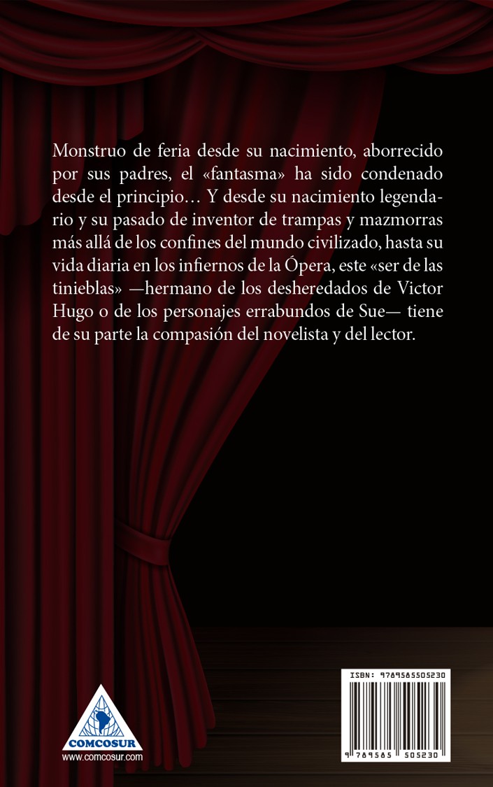 Monstruo de feria desde su nacimiento, aborrecido por sus padres, el «fantasma» ha sido condenado desde el principio… Y desde su nacimiento legendario y su pasado como inventor de trampas y mazmorras más allá de los confines del mundo civilizado, hasta su vida diaria en los infiernos de la Ópera, este «ser de las tinieblas» —hermano de los desheredados de Victor Hugo o de los personajes errantes de Sue— tiene de su parte la compasión del novelista y del lector.